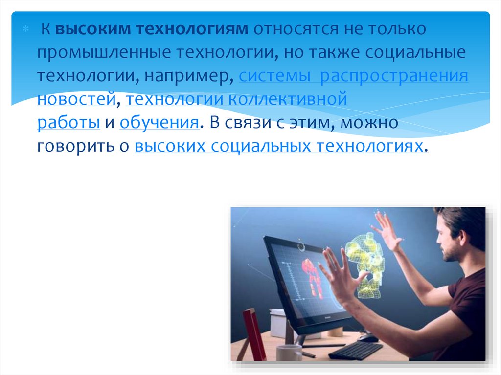 К высоким технологиям относятся не толькопромышленные технологии, но также социальные