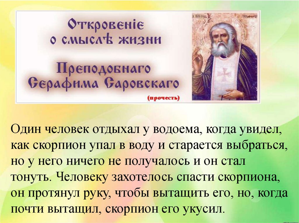 На это человек спокойно ответил:— В природе скорпиона — кусать, нападает ли