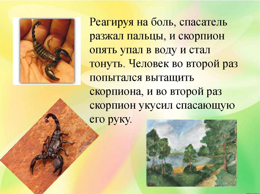 Реагируя на боль, спасательразжал пальцы, и скорпион