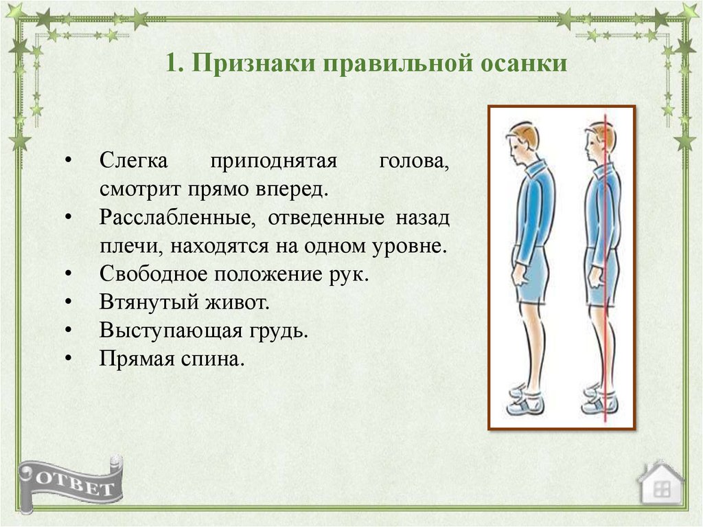 1. Признаки правильной осанкиСлегка