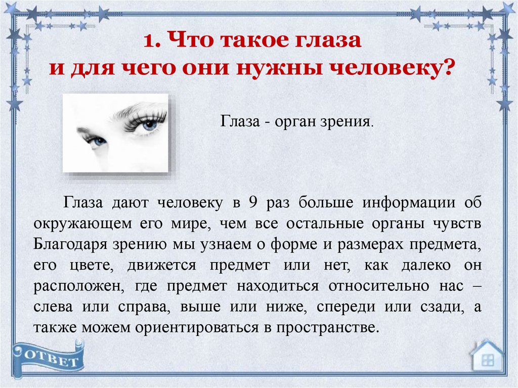 1. Что такое глазаи для чего они нужны человеку?