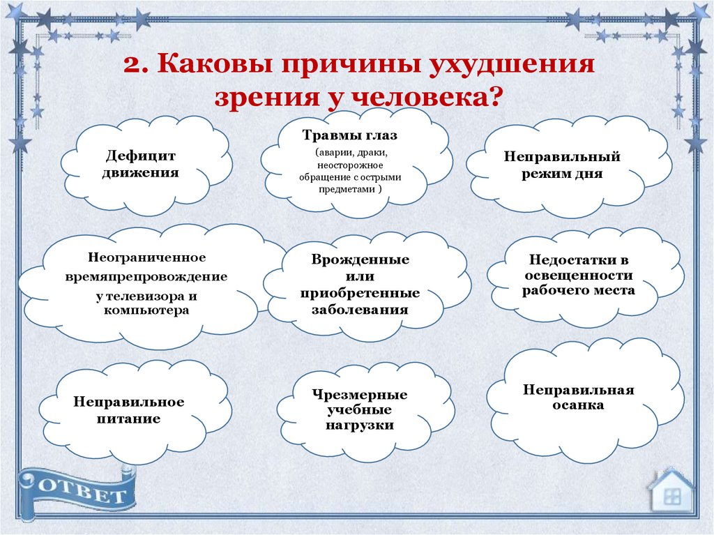 2. Каковы причины ухудшениязрения у человека?