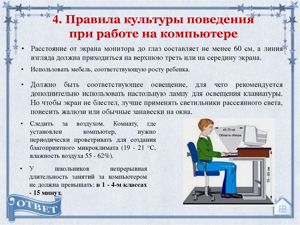 4. Правила культуры поведенияпри работе на компьютере