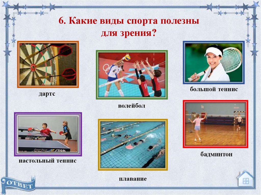 6. Какие виды спорта полезныдля зрения?