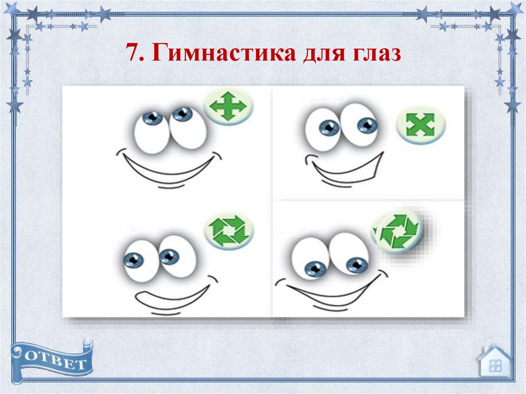 • Делать ежедневно физминутки для глаз.