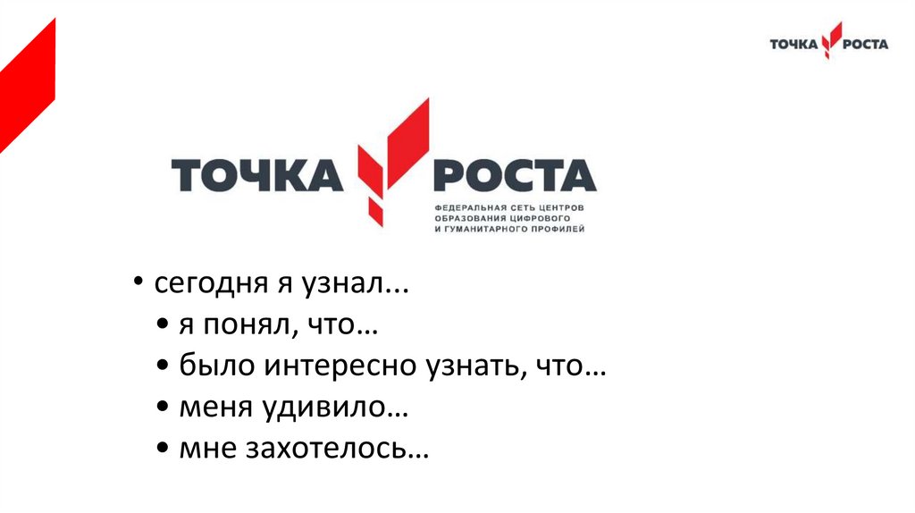 • сегодня я узнал...• я понял, что…