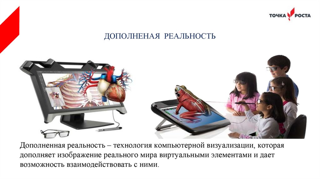 дополняет изображение реального мира виртуальными элементами и дает