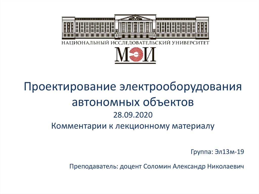 Проектирование электрооборудованияавтономных объектов
