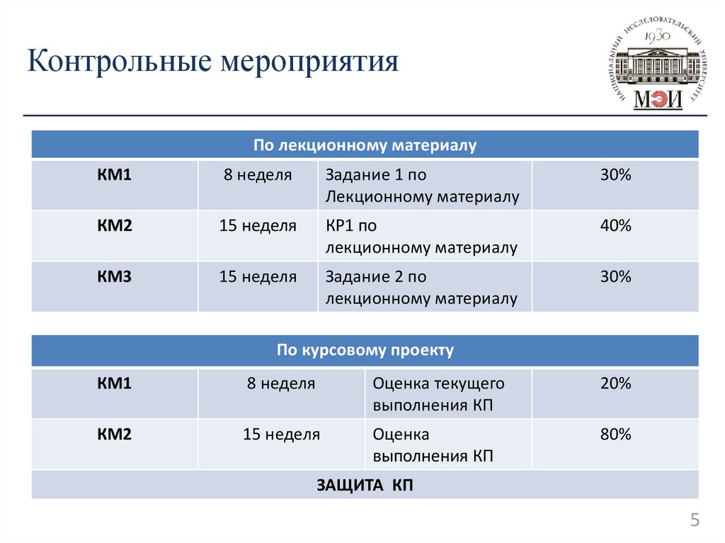 Контрольные мероприятияПо лекционному материалу