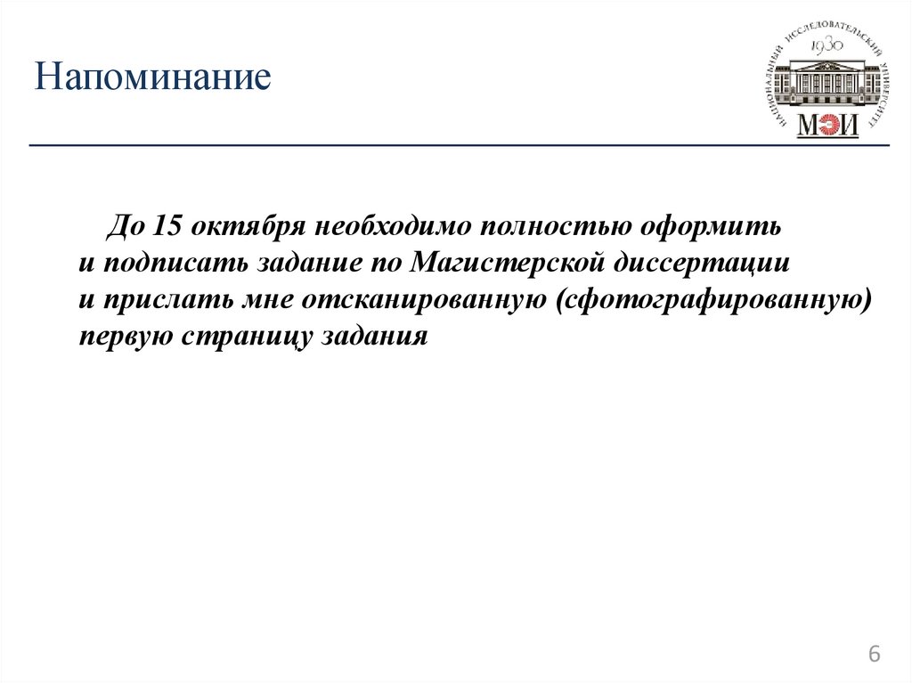 и подписать задание по Магистерской диссертации