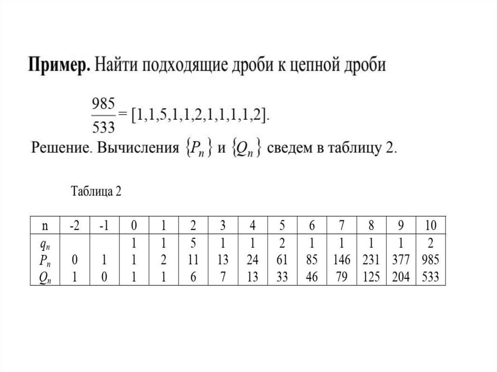 Подходящие дроби и их вычисление