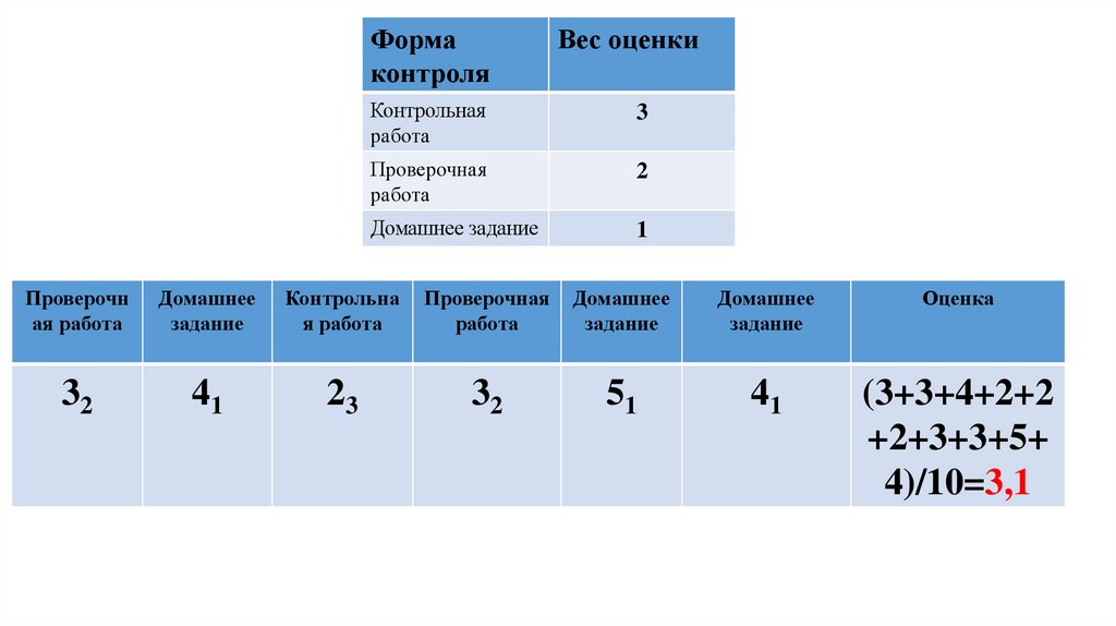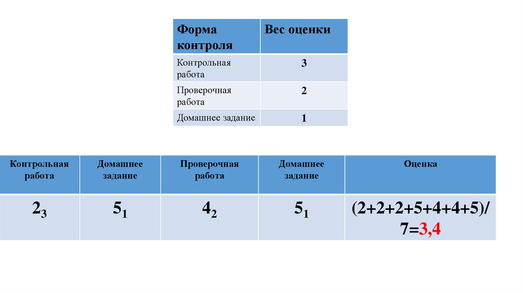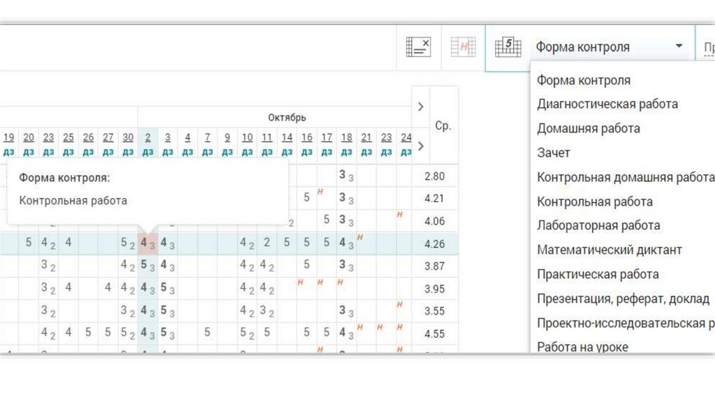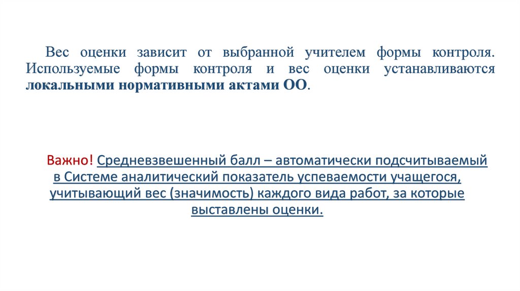 Вес оценки зависит от выбранной учителем формы контроля.Используемые формы контроля и вес оценки устанавливаются