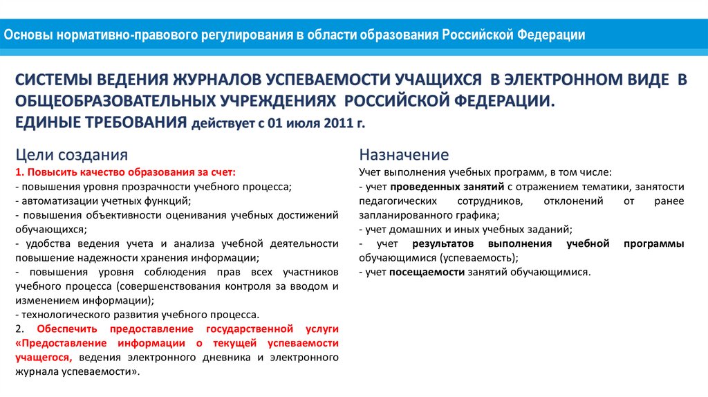 НОРМАТИВНАЯ БАЗАОсновы нормативно-правового регулирования в области образования Российской Федерации