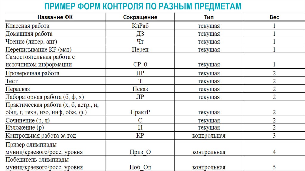 ПРИМЕР ФОРМ КОНТРОЛЯ ПО РАЗНЫМ ПРЕДМЕТАМ11.