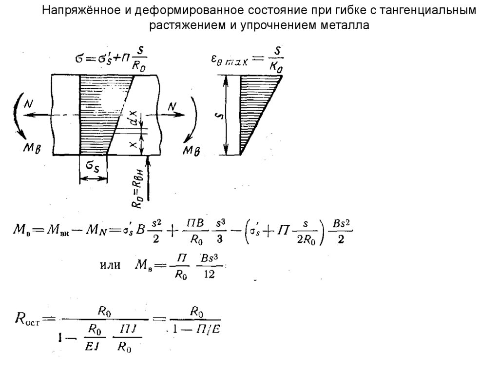 Напряжённое и деформированное состояние при гибке с тангенциальнымрастяжением и упрочнением металла