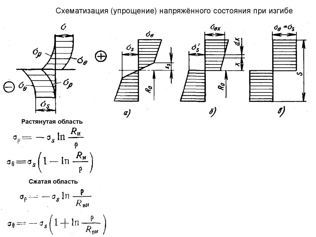 Схематизация (упрощение) напряжённого состояния при изгибеРастянутая область