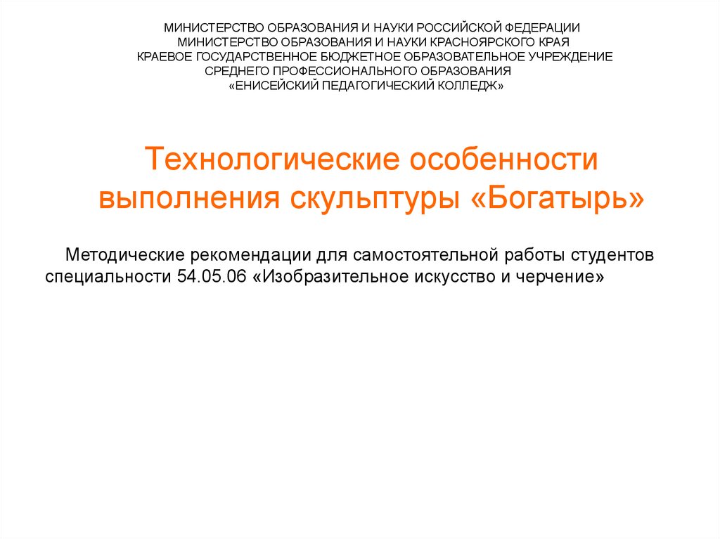 выполнения скульптур габаритных размеров. В методических рекомендациях собрана и