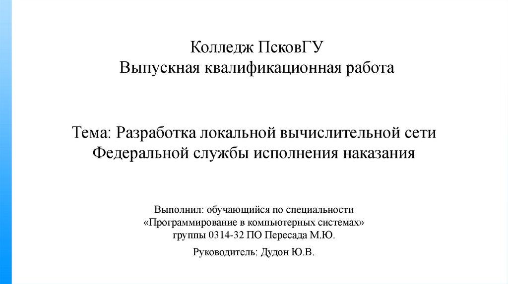 Разработка локальной вычислительной сети Федеральной службы исполнения наказания