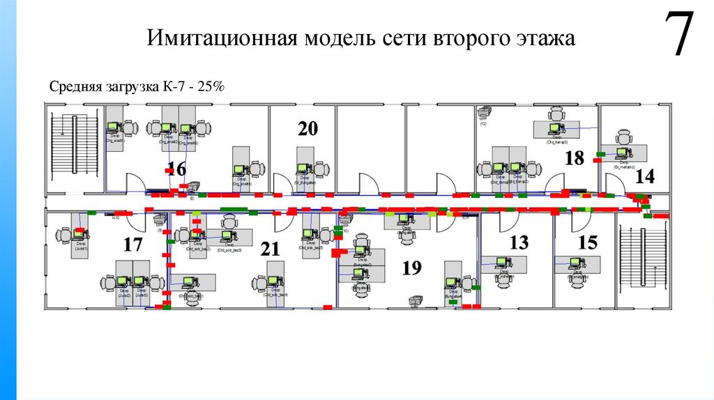Имитационная модель сети второго этажаСредняя загрузка К-7 - 25%
