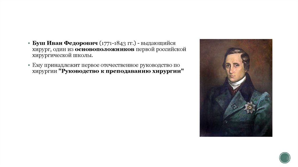 Буш Иван Федорович (1771-1843 гг.) - выдающийсяхирург, один из основоположников первой российской