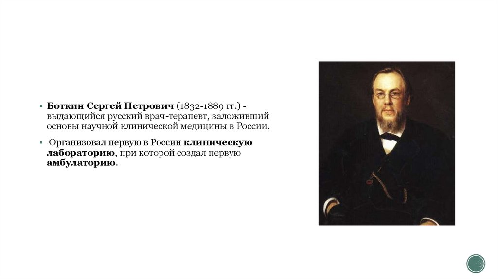 Боткин Сергей Петрович (1832-1889 гг.) -выдающийся русский врач-терапевт, заложивший