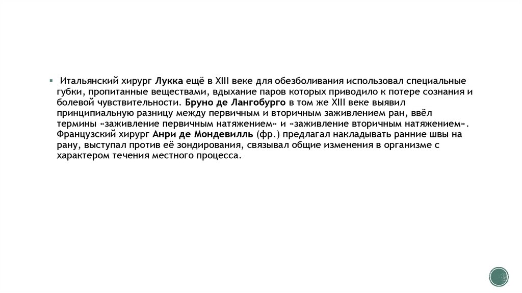 болевой чувствительности. Бруно де Лангобурго в том же XIII веке выявил