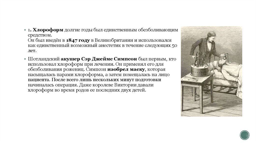 Итальянский хирург Лукка ещё в XIII веке для обезболивания использовал специальныегубки, пропитанные веществами, вдыхание паров которых приводило к потере сознания и