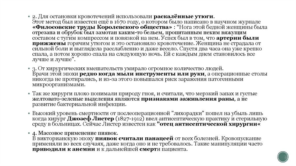 Например, профессор первым стал проводить операции по