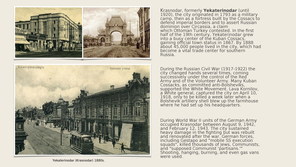 Krasnodar, formerly Yekaterinodar (until1920), the city originated in 1793 as a military