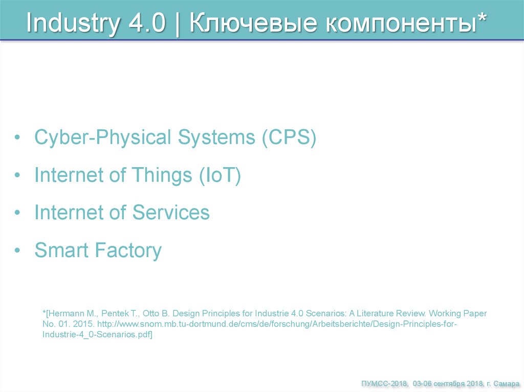 Industry 4.0 | Ключевые компоненты*• Cyber-Physical Systems (CPS)