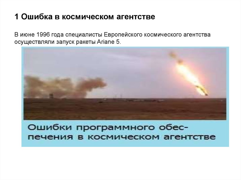 1 Ошибка в космическом агентствеВ июне 1996 года специалисты Европейского космического агентства