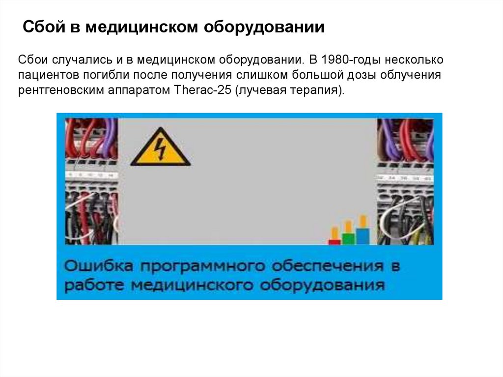 Сбой в медицинском оборудованииСбои случались и в медицинском оборудовании. В 1980-годы несколько
