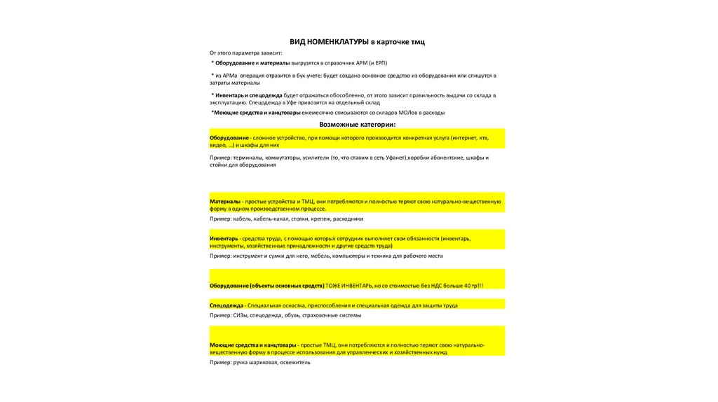 ВИД НОМЕНКЛАТУРЫ в карточке тмцОт этого параметра зависит: