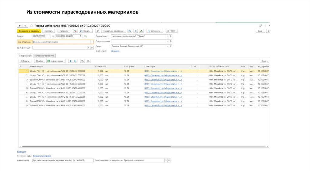 Из стоимости работ (зарплата строителей плюс страховые взносы)9.