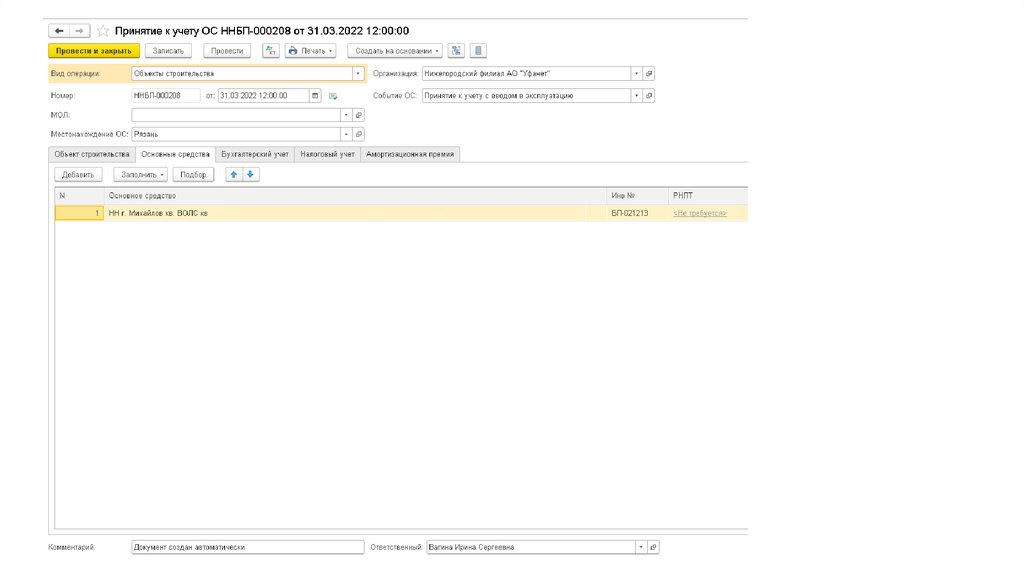 * из АРМа операция отразится в бух.учете: будет создано основное средство из оборудования или спишутся в