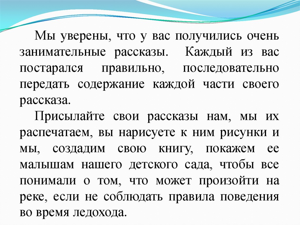 Мы уверены, что у вас получились оченьзанимательные рассказы. Каждый из вас