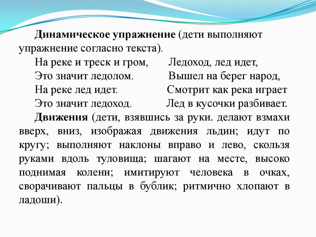 Динамическое упражнение (дети выполняютупражнение согласно текста).