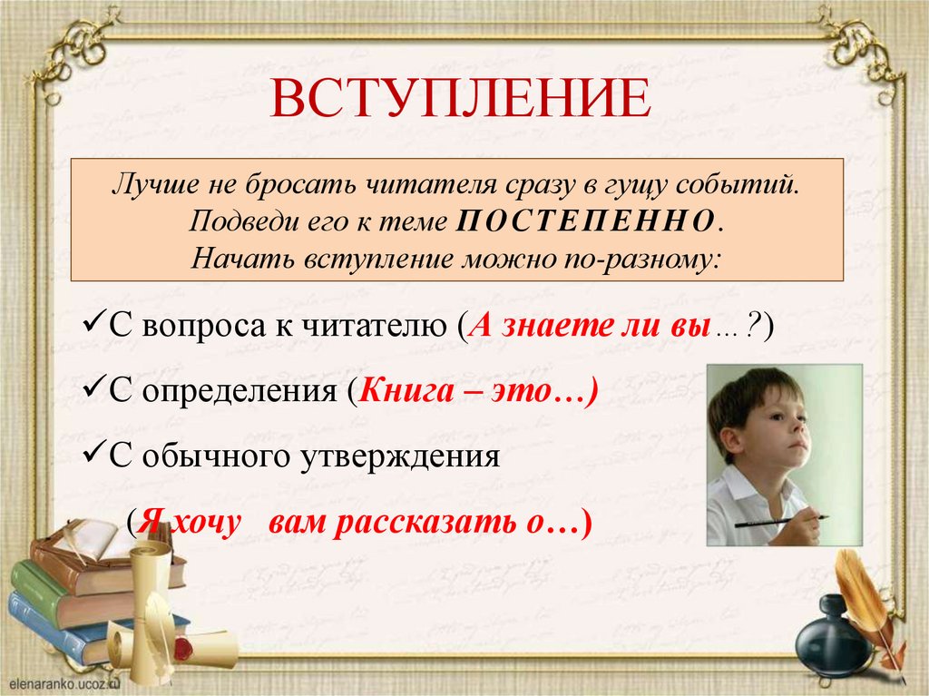 ВСТУПЛЕНИЕЛучше не бросать читателя сразу в гущу событий.