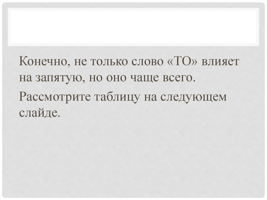 Конечно, не только слово «ТО» влияетна запятую, но оно чаще всего.