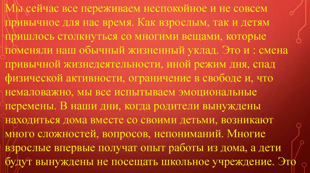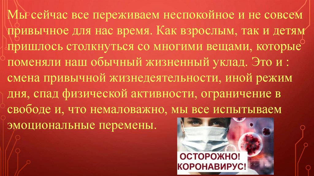 Мы сейчас все переживаем неспокойное и не совсемпривычное для нас время. Как взрослым, так и детям