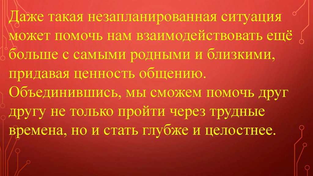 Даже такая незапланированная ситуацияможет помочь нам взаимодействовать ещё