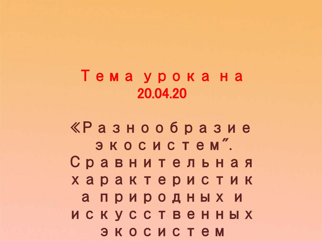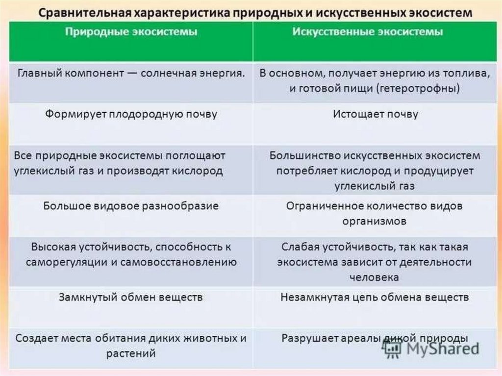 "Разнообразие экосистем". Сравнительная характеристик а природных и искусственных экосистем