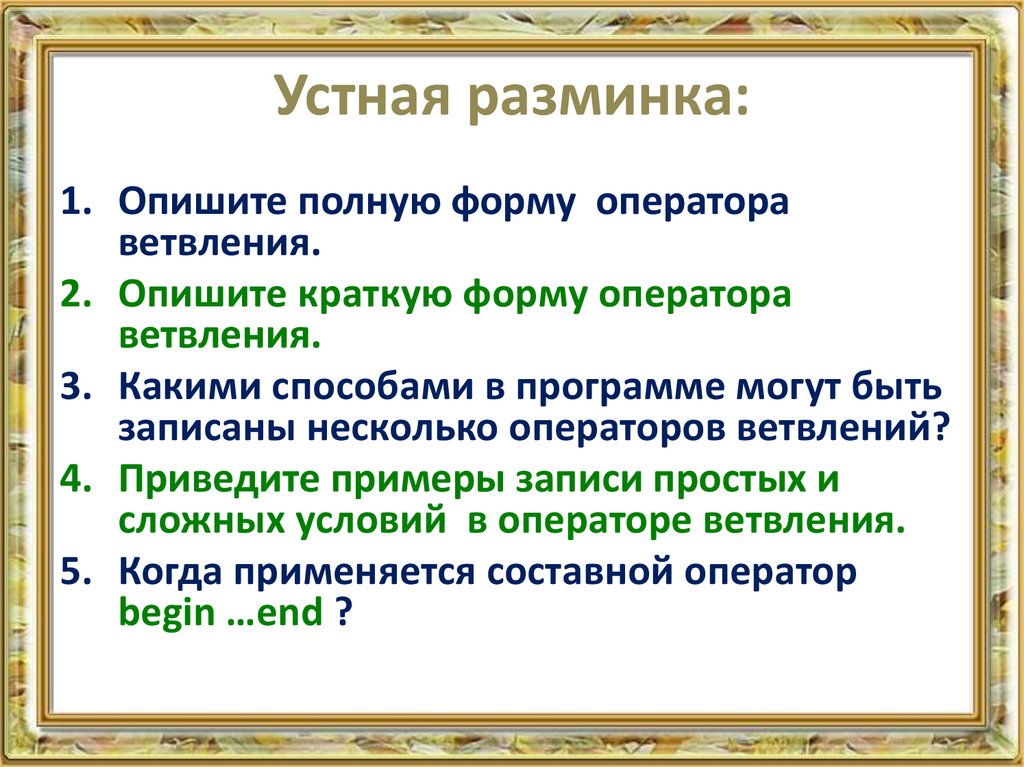6. Какое значение будет принимать переменная х, после выполнения фрагмента программы?