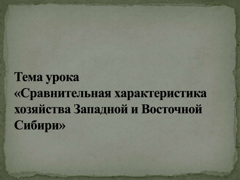 1. Тема урока «Сравнительная характеристика хозяйства Западной и Восточной Сибири»