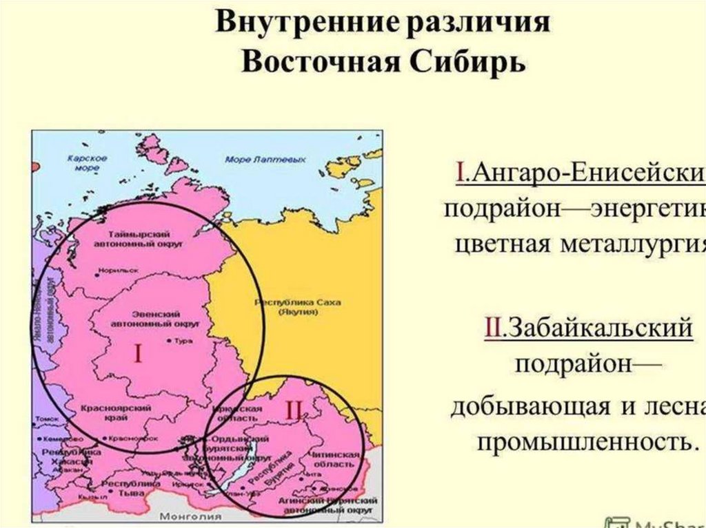 Выписать районы Восточной Сибири (слайд ниже)
