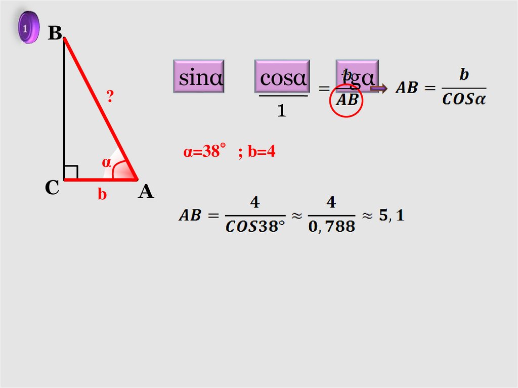 и гипотенузу через b и α.