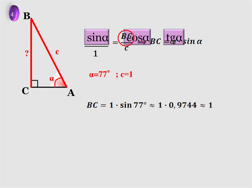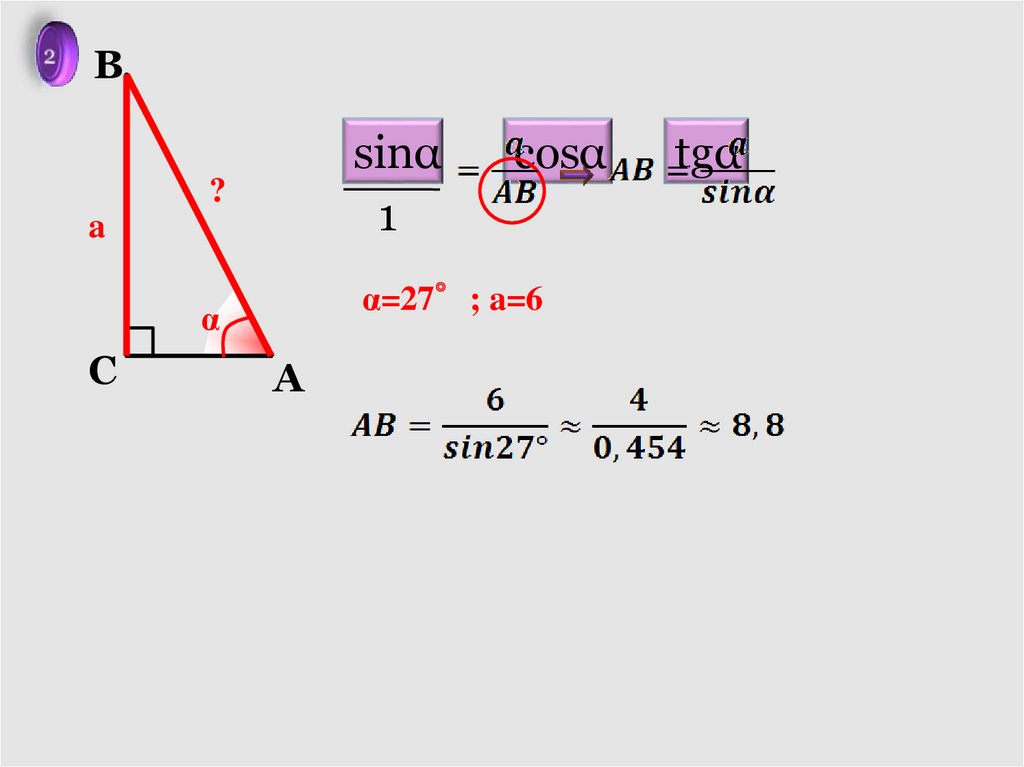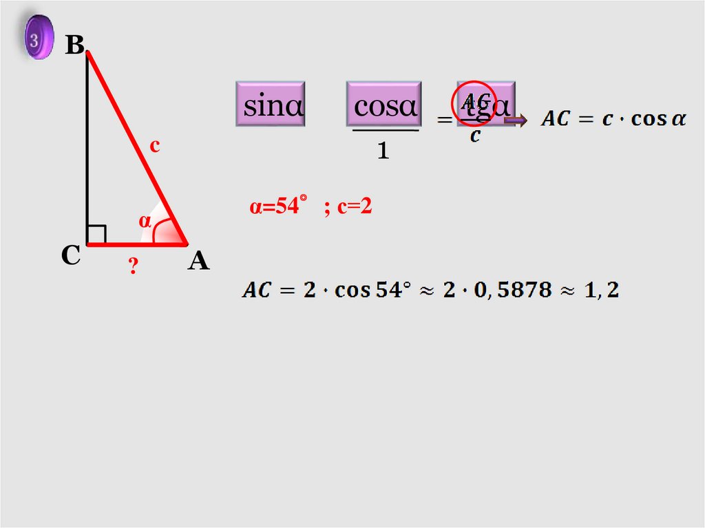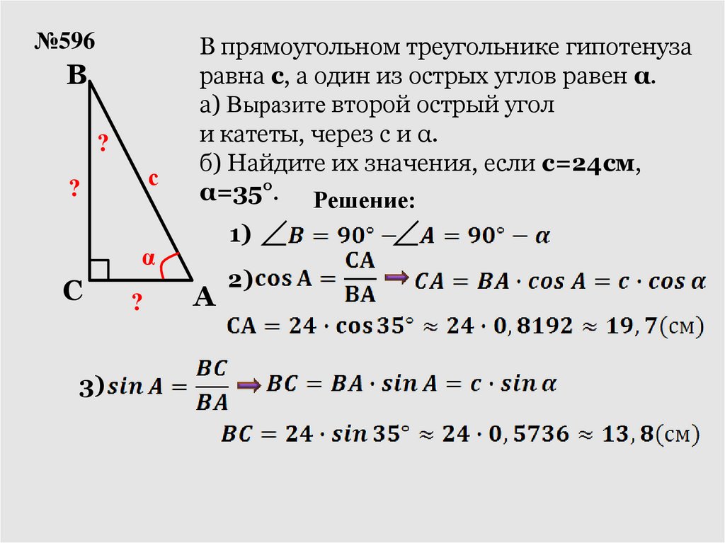 и катеты, через с и α.