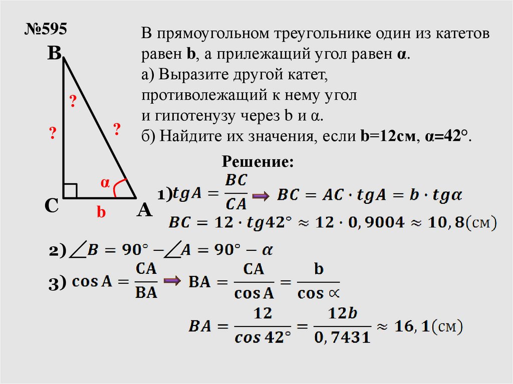 б) Найдите их значения, если b=12см, α=42°.