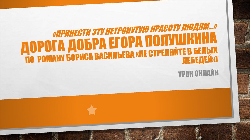 1. «Принести эту нетронутую красоту людям…» Дорога добра Егора Полушкина по роману Бориса Васильева «Не стреляйте в белых