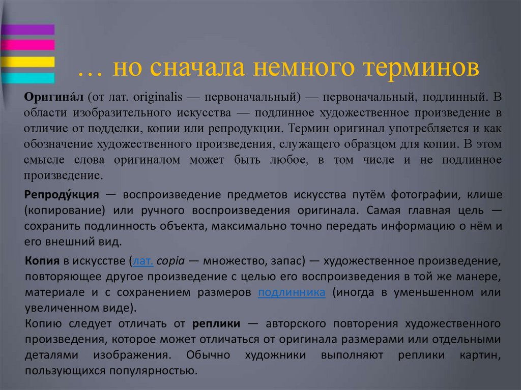 … но сначала немного терминовОригина́л (от лат. originalis — первоначальный) — первоначальный, подлинный. В
